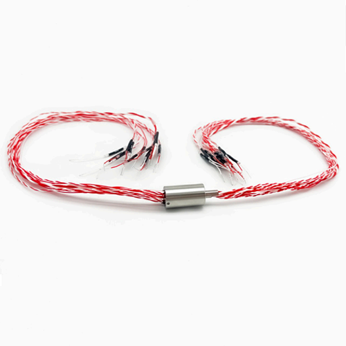 This slip ring features a modular design with 16 circuits, including 2 power rings rated at 4A, 2 power rings rated at 2A, and 12 signal rings rated at 1A. It has a compact structure, with a length of 22mm and a main body diameter of only 12.5mm. The rotor leads can be bent at a 90-degree angle.